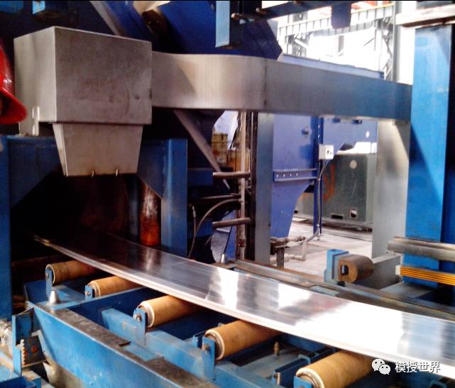 3、满足固溶处理的型材从加热炉的右下角出口处瞬间混到加热炉低下的冷却水槽里面进行冷却;