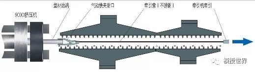 液氮冷却是将液氮降压后通过管道直接喷到模具出口处,将型材冷却。该冷却形式对提高产品的表面质量有帮助,但由于使用成本过高,应用较少。